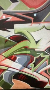 Nos murais na rua, sua forma de arte incorpora letras estilizadas que dificultam a leitura, algumas vezes interligadas pela ilusão de volume tridimensional. As inúmeras camadas e formas mais complexas das letras são características do Wildstyle, estilo complicado e elaborado de escritores urbanos.
